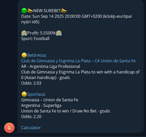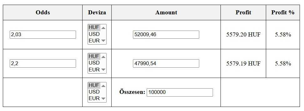 If the odds change at the bookmakers, you can use this calculator to check whether the bet would still be profitable.